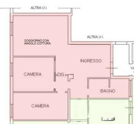 L'immobile si presenta con ampio ingresso, soggiorno con angolo cottura, disimpegno notte, due camere e bagno.