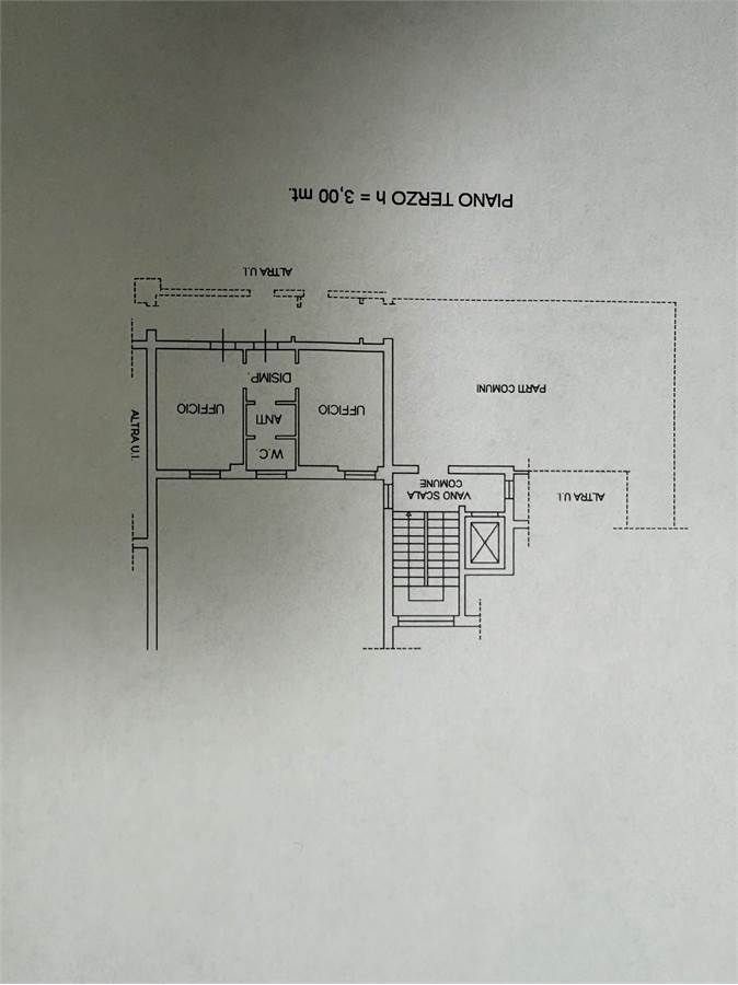 L'ufficio è situato al secono piano con ascensore, dotato di due vani, antibagno e bagno.