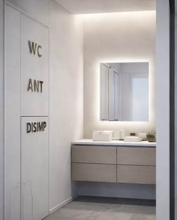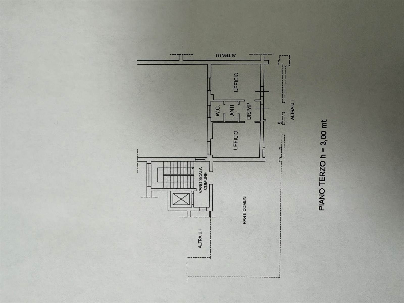 L'ufficio è situato al terzo piano con ascensore, dotato di due vani, antibagno e bagno.