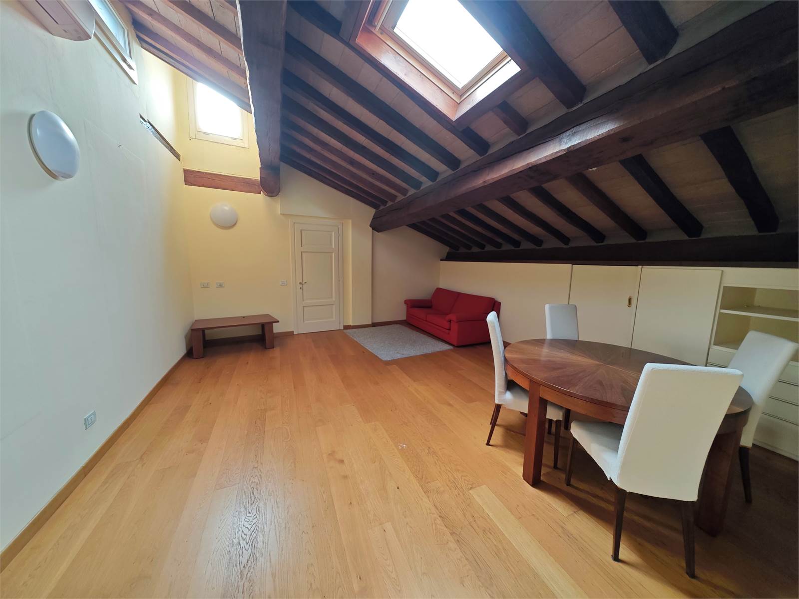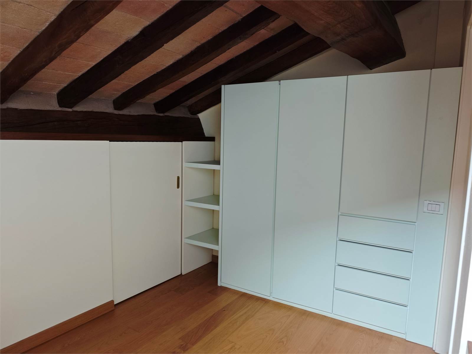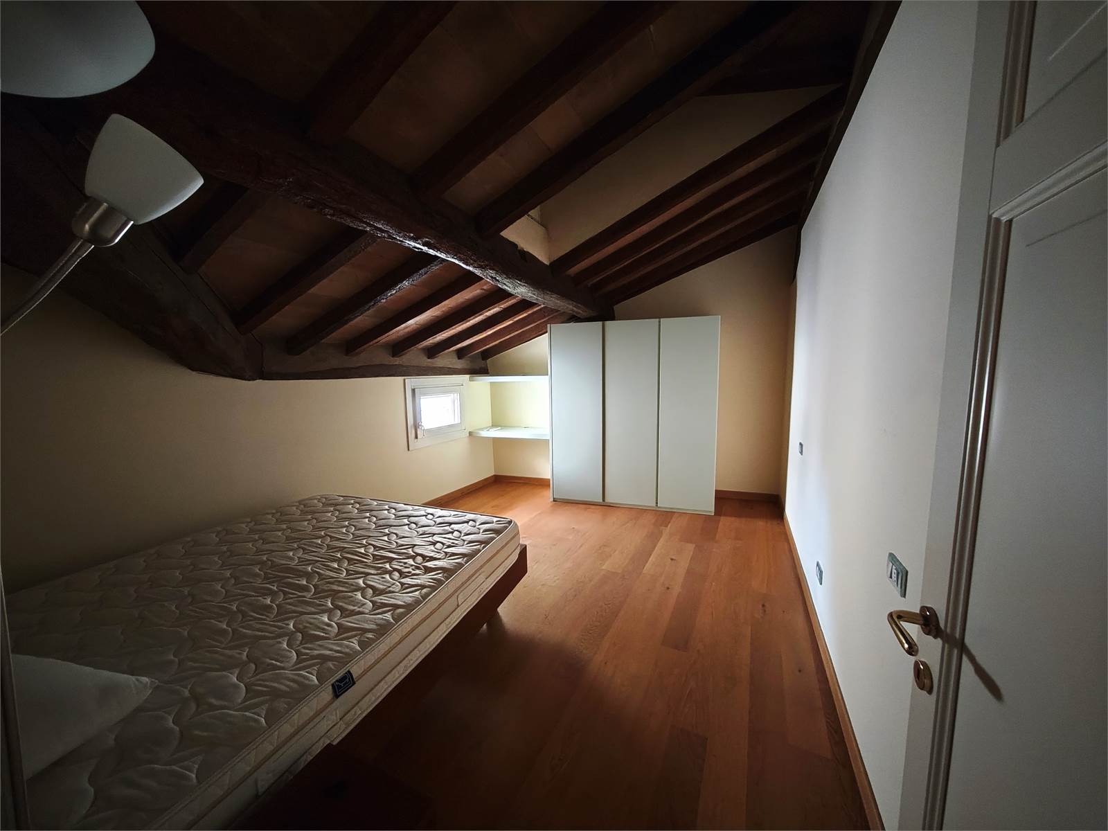 In contesto signorile curato in ogni dettaglio, proponiamo appartamento all'ultimo piano con affaccio sui tetti del centro storico. L'appartamento si compone di zona giorno con cucina, due stanze, bagno e ripostigli attrezzati.