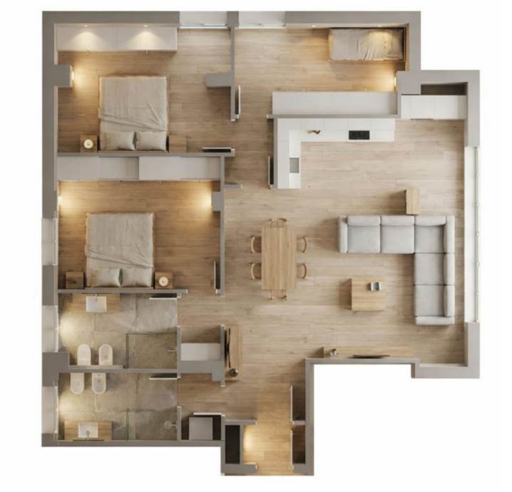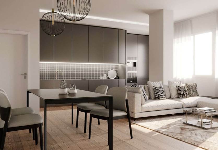 L’appartamento è impreziosito da pavimentazione in legno che dona calore ed eleganza a tutti gli ambienti, insieme a materiali e soluzioni di pregio che garantiscono comfort e stile contemporaneo.